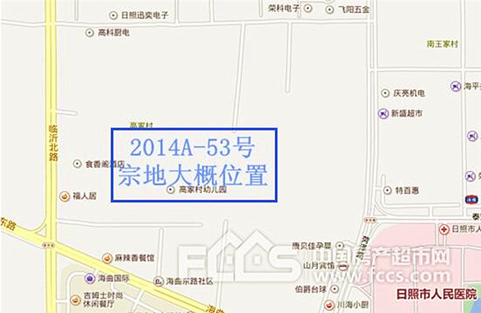 2014A-53號(hào)宗地位于臨沂路以東、泰安路以北(日照高家村),面積64019.7㎡(96.03畝),用途為住宅用地(商業(yè)≤13%),容積率≤3.35,綠地率≥35%,建筑密度≤23%。出讓年限商業(yè)用地部分40年,住宅用地部分70年,起叫價(jià)3.03億元,加價(jià)幅度為100萬元。據(jù)日照房產(chǎn)超市網(wǎng)了解,該地塊在2015年6月11日參與拍賣,起價(jià)為3.36億元,不過最終因無人報(bào)名流拍。